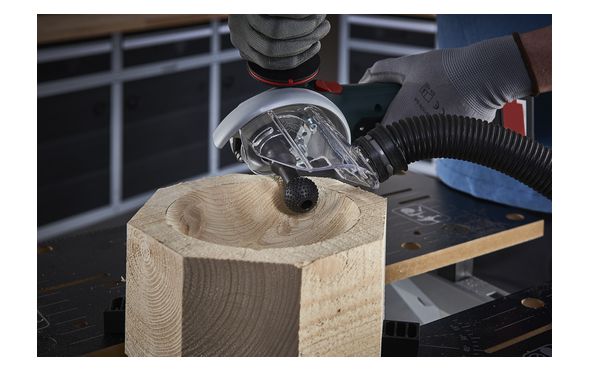 • Ξεχωρίζει εξαιτίας της επιθετικής αφαίρεσης υλικού και της γρήγορης προόδου των εργασιών. Χάρη στον εργονομικό σχεδιασμό για εργασία με τα χέρια ελεύθερα μπορείτε να διαμορφώσετε ελεγχόμενα, π.χ. ξύλινα γλυπτά.