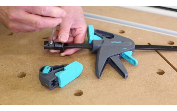 Για την συγκράτηση τεμαχίων επάνω στην επιφάνεια εργασίας. Για όλα τα τραπέζια εργασίας με οπές 20 mm στον πάγκο εργασίας (ταιριάζει σε όλα τα τραπέζια Wolfcraft). Περιλαμβάνει επάνω σιαγόνα συγκράτησης - μπορεί να χρησιμοποιηθεί και ως απλός σφιγκτήρας.