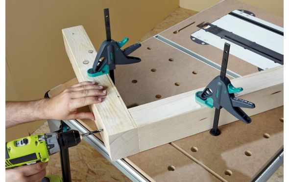 • Για όλα τα τραπέζια εργασίας με οπές 20 mm στον πάγκο εργασίας (ταιριάζει σε όλα τα τραπέζια Wolfcraft).